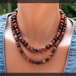 Amazing gift idea for all occasions. This bracelet would fit any style – elegant, casual, or sporty. This beautiful handcrafted gemstone bracelet is made from 10 mm agate beads. Agate is a stone that will fill your life with joy, gladness, and optimism.